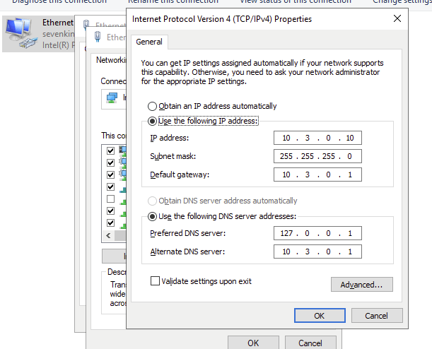 Next, ensure that each machine joined to a particular domain has the IP Address of the corresponding domain controller as its primary DNS. For instance, the braavos.essos.local server will need to resolve the essos.local domain so I set the DNS ip to that of the meereen.essos.local machine.