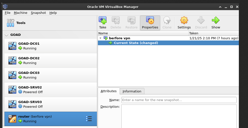 As mentioned in a previous post, I am setting up the intentionally vulnerable GOAD lab on a spare desktop using a fresh install of the Linux operating system Debian 12 and Virtualbox, and using a virtualized router/firewall called PFSense to create the private GOAD network.