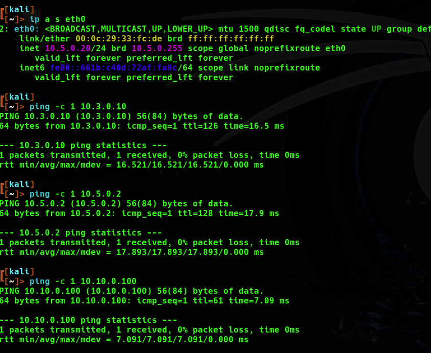 | DMZ lab | 172.21.0.0/24 | two routers/firewalls | 192.168.50.104, 10.10.0.254 |