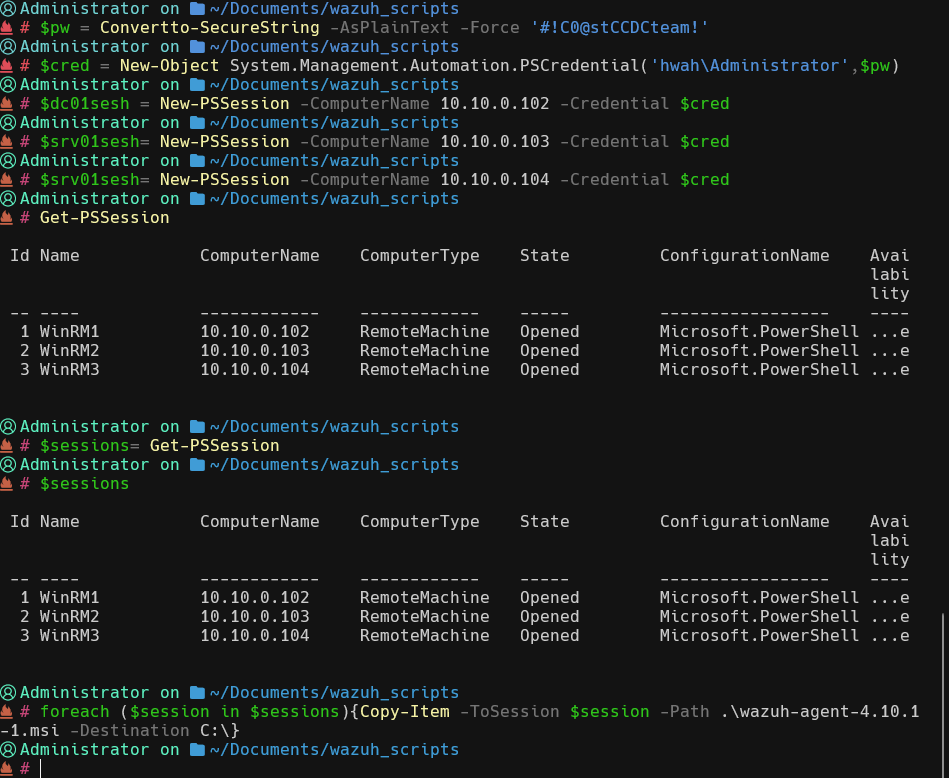 $arguments = @("/i", "`"$wazuh`"", "/qn","WAZUH_MANAGER=10.5.0.5","WAZUH_AGENT_GROUP=dmz-lab","WAZUH_AGENT_NAME=dmz-`"$env:computername`"")