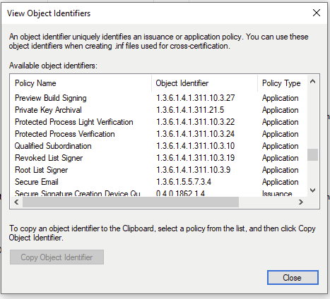 And create a new Policy with the OID shown below.