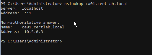 This will forward all DNS requests for the certlab.local domain through our DNS server in hwah.us to the DC/DNS server in certlab.local.