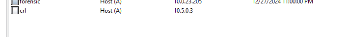 First, I created an A record to point crl.certlab.local to our CA.