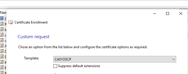 The custom OSCP Signing template I created was automatically acknowledged by the wizard.