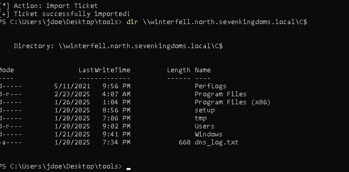 With the ticket injected, we now have access to the C$ share on winterfell.north.sevenkingdoms.