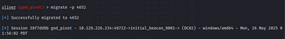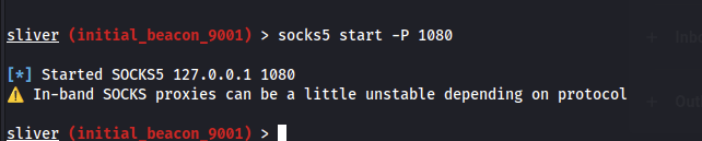 Sliver even comes with a built in SOCKS proxy so we can use our session to reach the internal ips with proxychains, just make sure that the same port is specified in the /etc/proxychains.conf file. This proxy is tied to the sesssion, however so if the implant goes down anything connnected via the proxy will also go down!