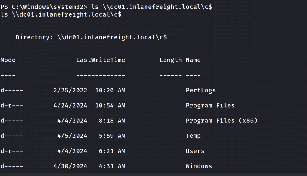 Now we can access the C$ share of the dc01.inlanefreight.local domain controller and grab the flag.